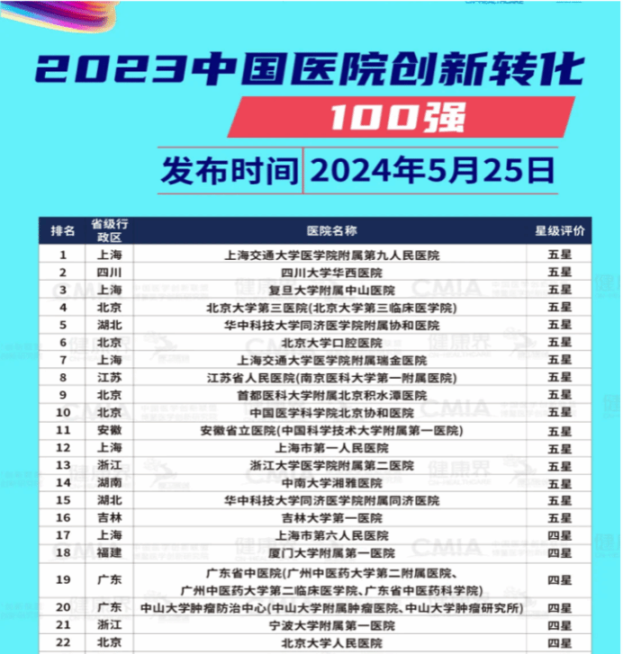 圖1:入選中國醫院創新轉化100強,排名第44位