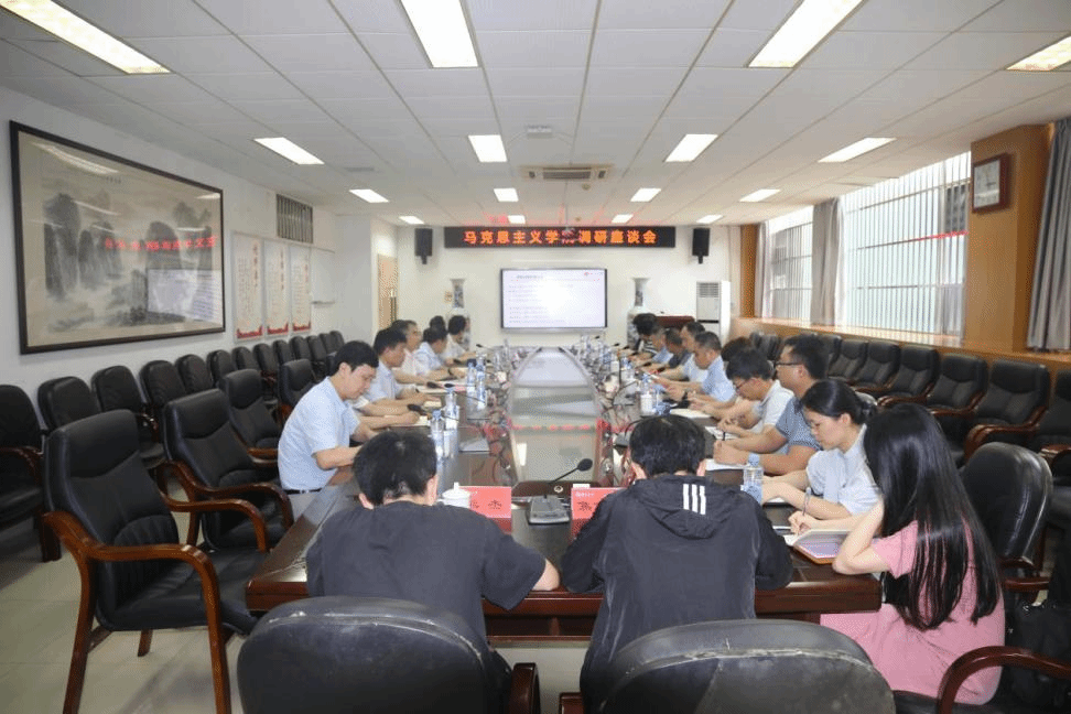 校黨政辦公室、發展規劃與學科建設處、人事處、社會科學處、教務處、政策研究與綜合改革辦公室等部門負責人陪同調研。馬克思主義學院黨政班子成員、教研部主任、黨支部書記和教師代表參加座談會。
