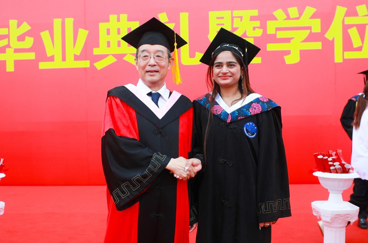 “作為南大人,我們生逢其時、重任在肩,帶著南大給予的一身本領,向祖國和人民最需要的地方出發。”“感謝南昌大學,讓我們在強國有我的錚錚誓言中,明晰鑄夢于心、報國于行的青春使命。”“來到中國留學,是因為我對擁有悠久歷史和燦爛文化的中國懷有濃厚的興趣。在即將離開母校之際,我想說一句:南昌大學,謝謝你!”本科生代表諶昕悅、研究生代表邢直、留學生代表達利亞回憶了在校學習生活點滴,表達了對母校的感恩與不舍之情。“希望同學們堅定信心,持之以恒,擁有獨立思考的能力,樂觀向上并保持終身學習的態度,常懷感恩之心,保持善良品質,做心中有愛之人。”79級計算機數學專業校友,中國工程院外籍院士,美國國家工程院院士,加拿大皇家科學院院士、工程院院士陳掌星為畢業生們送上美好祝福,勉勵同學們在奮斗中實現人生價值。