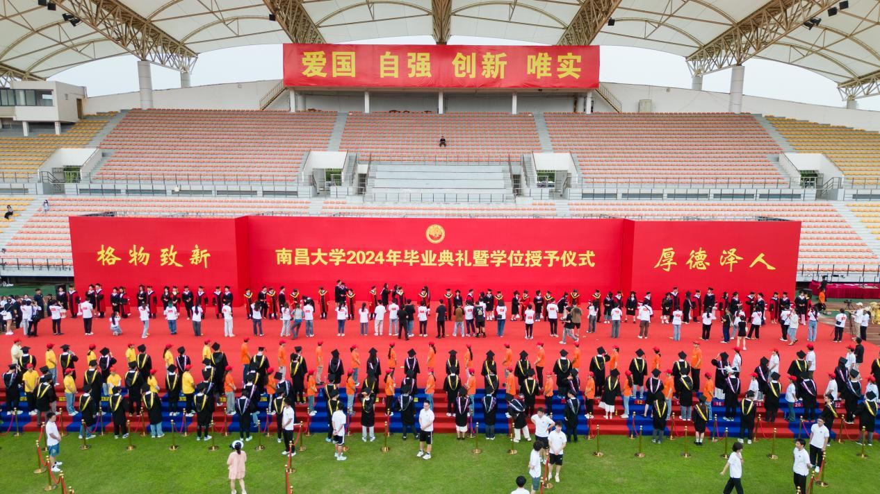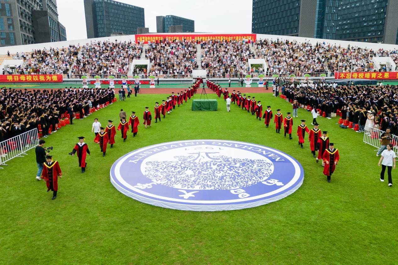 本網訊(記者許航)山高海闊再出發,策馬逐夢赴未來。6月22日上午,南昌大學2024年畢業典禮暨學位授予儀式在莊嚴的國歌聲中拉開帷幕。萬余名畢業生相聚白帆體育場同上在校最后一堂思政大課,在校黨委書記羅嗣海,校長、中國科學院院士陳曄光等校領導,中國工程院院士謝明勇、教育部駐南昌大學黨建工作聯絡員張泰城等導師團代表,各單位負責人、校友代表、家長代表、教職工代表共同見證與祝福下,撥穗正冠,奔赴星辰大海,闊步錦繡未來。