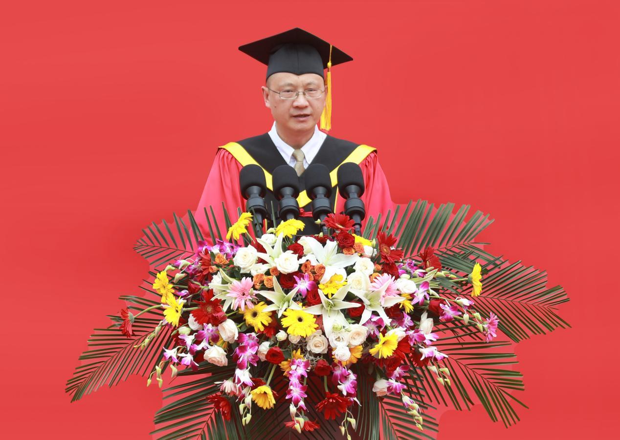 陳曄光在題為《錘煉毅力 行穩致遠》的講話中,代表學校全體教職工,向2024屆畢業生們表示最熱烈的祝賀和最美好的祝愿,向辛勤培育學子的老師和家長致以最誠摯的問候和最真誠的敬意。“鍥而不舍,金石可鏤。毅力是我們在平凡人生中擺脫平庸、成就“非凡”、行穩致遠、取得成功的鑰匙,毅力是朝著理想目標奮進的力量,只有不斷錘煉毅力才能讓我們成就夢想。”他以樸實真摯的話語,以校長和學長的身份深情勉勵廣大畢業生,要樹牢“士不可不弘毅,任重而道遠”的理想信念,堅持“積跬步,以至千里”的行動自覺,涵養“千磨萬擊還堅勁,任爾東西南北風”的精神境界,不懼風雨、守望相助,直面挑戰、攻堅克難,用堅韌的毅力去創造屬于自己的輝煌人生。