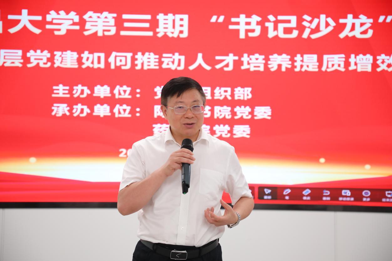 本網訊(記者程慧萍、學生記者王金濤)6月28日,南昌大學第三期“書記沙龍”在際鑾書院舉辦。本期沙龍以“基層黨建如何推動人才培養提質增效”為主題,旨在進一步加強基層黨建工作,提高干部隊伍思想認識,提升學校人才培養質量。校黨委書記羅嗣海出席并講話。第一附屬醫院黨委書記廖嵐,校黨委常委滕勇前、劉建光參加活動。