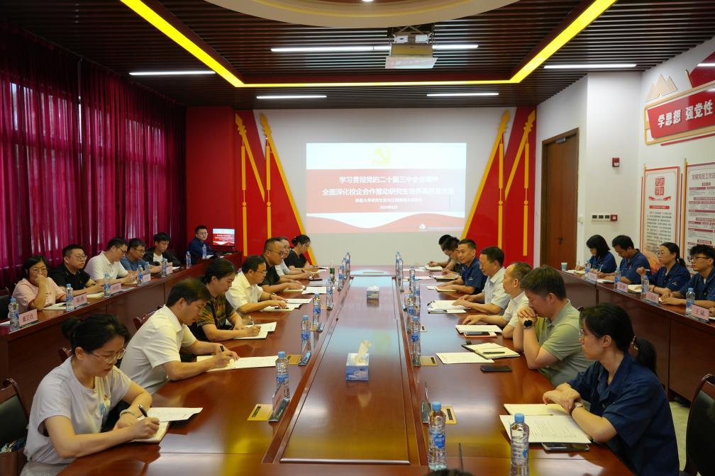 南昌大學(xué)研究生院常務(wù)副院長(zhǎng)黃偉介紹了學(xué)校近年來在學(xué)科建設(shè)、研究生培養(yǎng)、科技創(chuàng)新等方面所取得的顯著成果,重點(diǎn)介紹了卓越工程師學(xué)院的建設(shè)情況和下一步工作打算,希望與江銅集團(tuán)共同探索構(gòu)建工程碩博研究生“全鏈條設(shè)計(jì)、全要素配置、全過程培養(yǎng)”的校企聯(lián)合培養(yǎng)模式。江西銅業(yè)集團(tuán)銅箔公司黨委書記、董事長(zhǎng)吳曉光從人才建設(shè)基本情況、人才工作計(jì)劃、科技研發(fā)情況等方面對(duì)公司進(jìn)行了詳細(xì)介紹,同時(shí)希望未來能夠與南昌大學(xué)進(jìn)一步拓寬合作領(lǐng)域,深化合作內(nèi)涵,不斷推動(dòng)產(chǎn)學(xué)研深度融合,為企業(yè)和社會(huì)培養(yǎng)更多高素質(zhì)、復(fù)合型優(yōu)秀人才。雙方黨員代表分別圍繞黨的二十屆三中全會(huì)精神,結(jié)合自身學(xué)習(xí)、工作體會(huì)作了交流發(fā)言,氣氛熱烈。