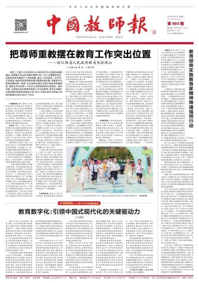 黨的二十屆三中全會是在以中國式現(xiàn)代化全面推進強國建設、民族復興偉業(yè)的關(guān)鍵時期舉行的一次十分重要的會議,對教育改革發(fā)展進行了戰(zhàn)略部署,提出了總體要求。近年來,江西省委、省政府堅持把教育擺在重要戰(zhàn)略位置,把教師作為教育發(fā)展的第一資源,在全國率先建立長期從教教師榮譽制度,涌現(xiàn)出支月英等一大批在全國有影響的先進典型。新的時期,江西省如何全面貫徹落實黨的二十屆三中全會精神,推動全會重大決策部署在教育系統(tǒng)落地見效,近日,中國教師報記者對江西省人民政府副省長孫洪山進行了專訪。