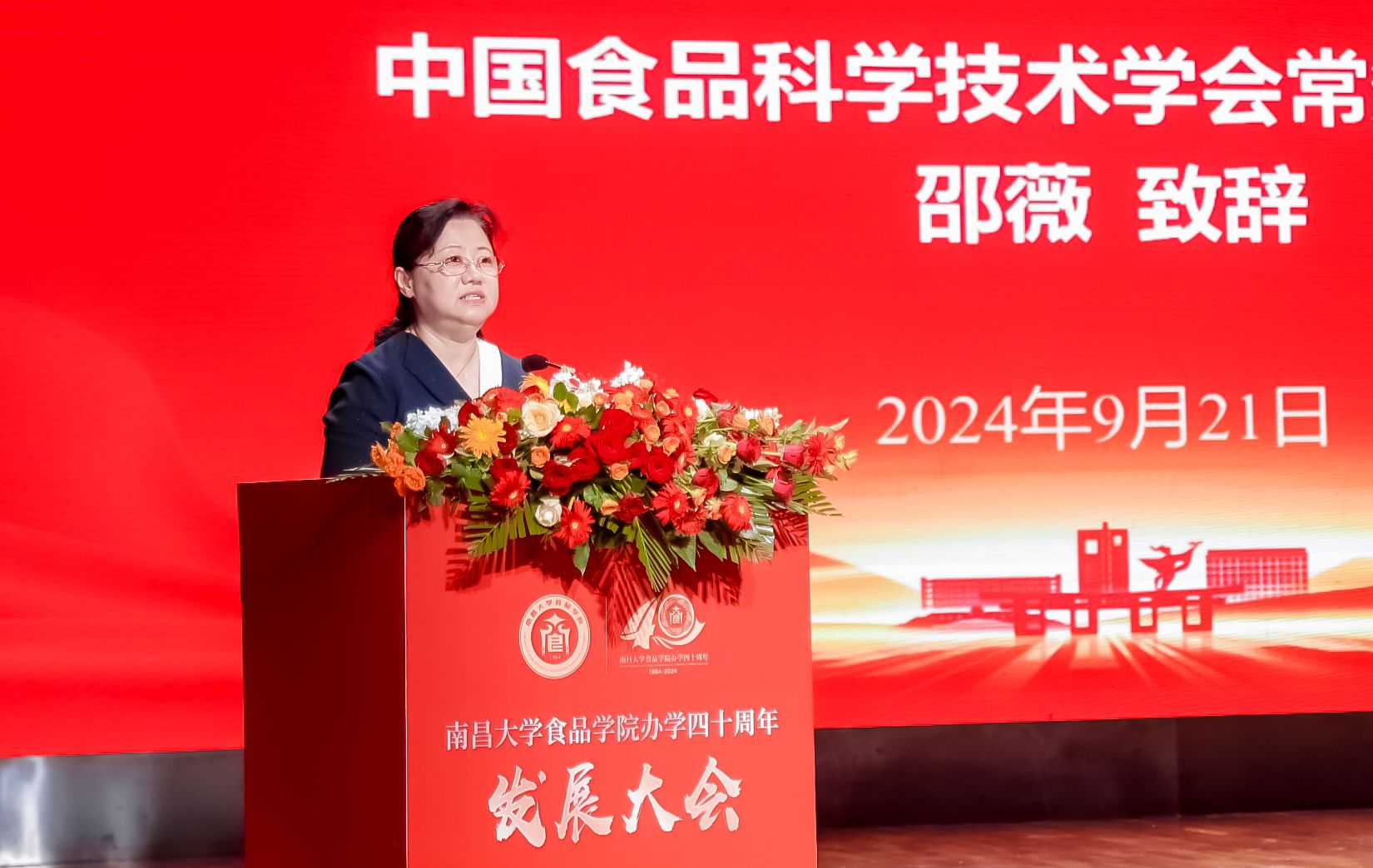 邵薇代表中國食品科學技術學會向食品學院辦學40周年表示祝賀。她指出,長期以來,中國食品科學技術學會與食品學院有著良好的合作關系,希望以此次院慶為契機,雙方攜手共進,始終致力服務中國食品科技進步、產業健康發展和人才培養。