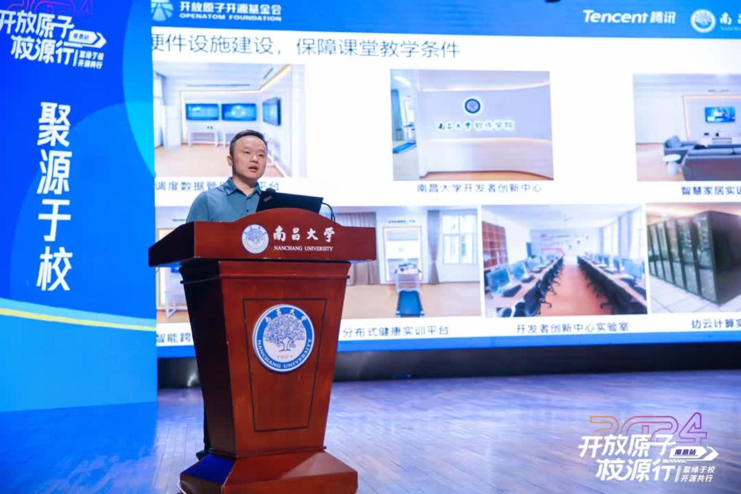 杜建強(qiáng)代表學(xué)校向本次活動(dòng)的舉辦表示祝賀,向出席活動(dòng)的各位領(lǐng)導(dǎo)、專家和師生們表示歡迎。他指出,南昌大學(xué)高度重視開源文化建設(shè),積極推進(jìn)開源軟件人才培養(yǎng),推進(jìn)產(chǎn)教融合、科教融匯,在全國較早成立了開源鴻蒙俱樂部和開源創(chuàng)客協(xié)會(huì),鼓勵(lì)學(xué)生加入開源社區(qū)和開源生態(tài)建設(shè)中,在服務(wù)國家戰(zhàn)略和地方經(jīng)濟(jì)社會(huì)發(fā)展中彰顯使命擔(dān)當(dāng)。此次活動(dòng)不僅向在校師生普及了開源思想與理念,還展示了開源技術(shù)的最新成果與創(chuàng)新探索,推動(dòng)了人才培養(yǎng)與科研項(xiàng)目合作。未來,學(xué)校將致力于開源人才的培養(yǎng),為國內(nèi)開源事業(yè)的持續(xù)發(fā)展與繁榮貢獻(xiàn)力量。