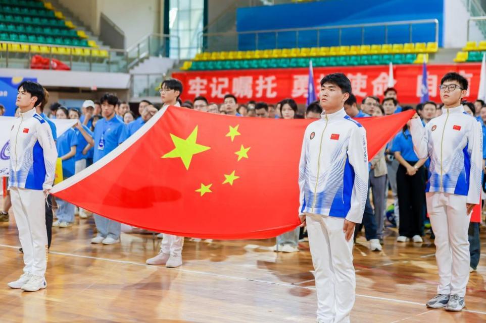 開幕式上,伴隨著激揚高亢的樂曲,護旗手莊重地托舉著國旗、校旗、校友總會會旗步入會場。現場奏響中華人民共和國國歌,在場全體人員莊嚴肅立,齊唱國歌,南昌大學校友會體育分會會長黃瑞爐致歡迎辭。