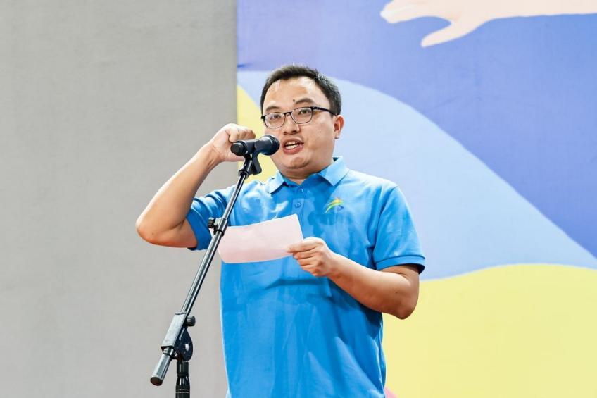 陳曄光宣布首屆校友運動會正式開幕,現場禮炮齊鳴,本屆運動會正式拉開帷幕。