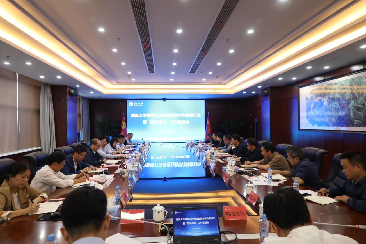 本網(wǎng)訊(記者朱文芳)10月8日,學校召開服務江西制造業(yè)數(shù)字化轉(zhuǎn)型行動暨“數(shù)字南大”工作推進會。校黨委書記羅嗣海,鷹潭高新技術產(chǎn)業(yè)開發(fā)區(qū)黨工委副書記、管委會主任肖霖出席會議并講話。副校長杜建強主持會議。