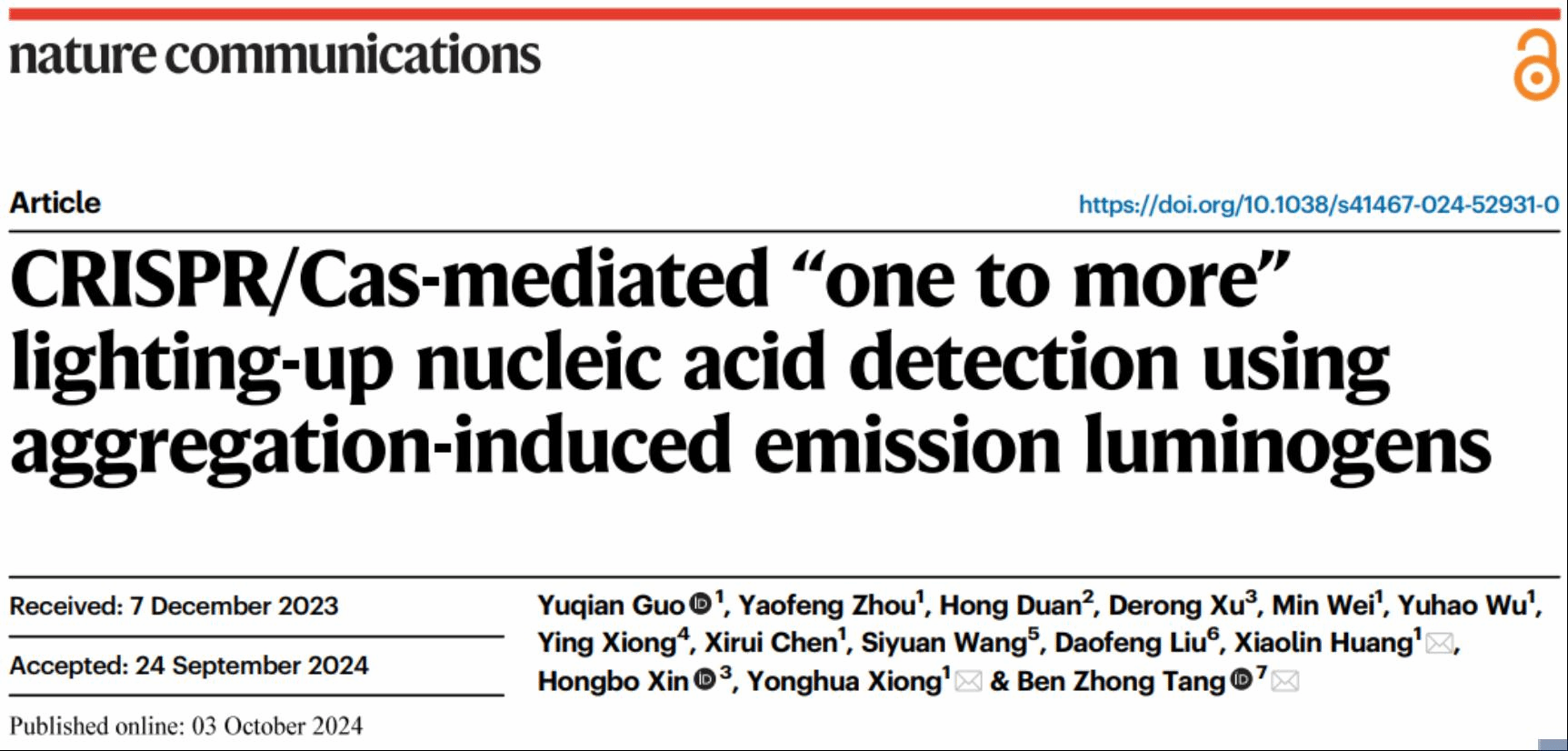 本網訊(食品學院)10月3日,南昌大學食品學院、中德聯(lián)合研究院熊勇華、黃小林研究員團隊在CrisprAIE核酸檢測領域取得新進展,在Nature Communications發(fā)表最新研究成果。