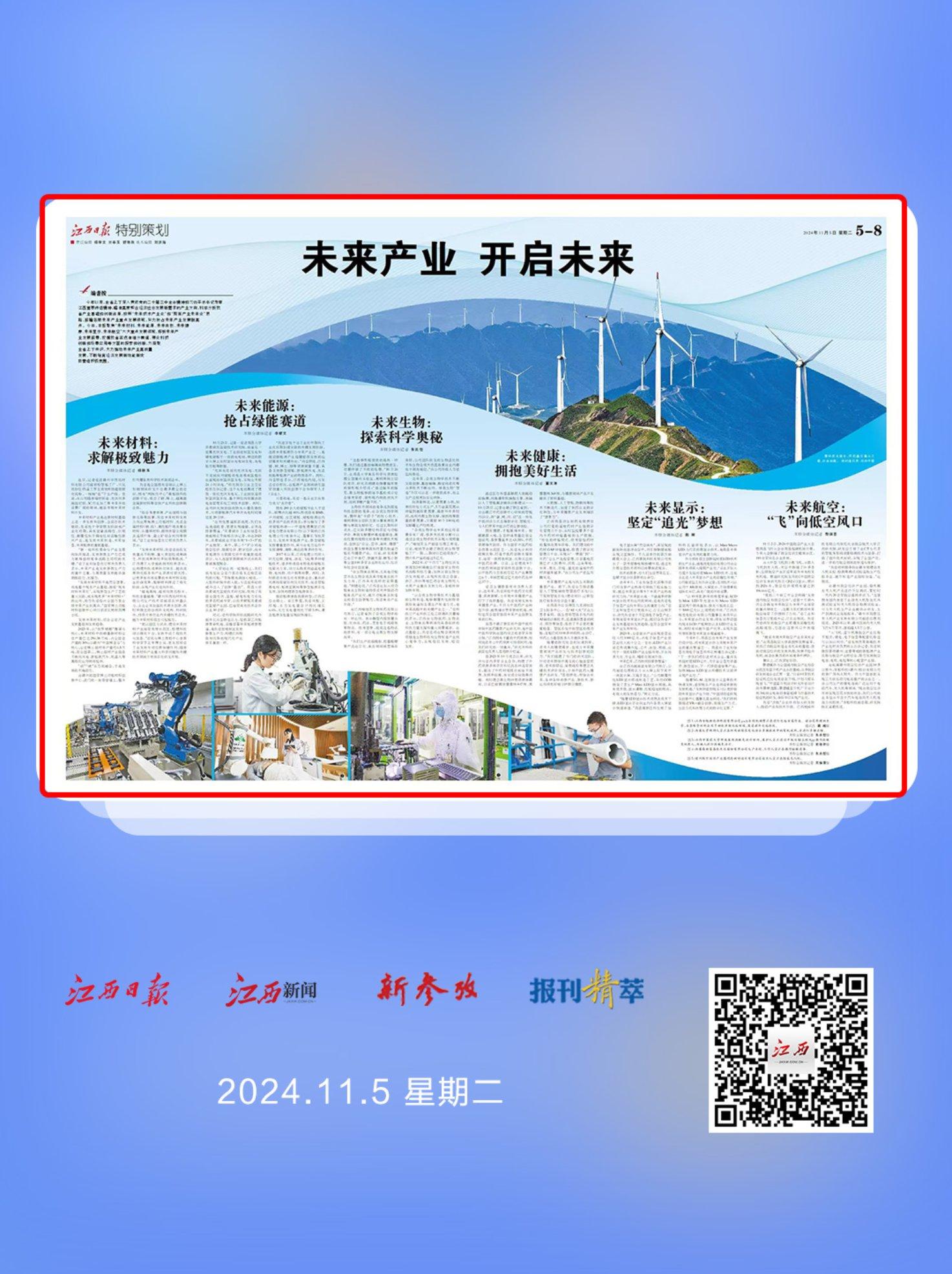 今年以來,全省上下深入貫徹黨的二十屆三中全會精神和習近平總書記考察江西重要講話精神,瞄準高度契合經濟社會發展新需求的產業方向,科學分析我省產業基礎和創新資源,按照“未來技術產業化”和“現有產業未來化”思路,前瞻布局未來產業重點發展領域,努力搶占未來產業發展制高點。今日,江西日報聚焦“未來材料、未來能源、未來生物、未來健康、未來顯示、未來航空”六大重點發展領域,探析未來產業發展前景,挖掘我省在選準細分賽道、強化科技創新和場景應用等方面的探索和創新,為凝聚全省上下共識,大力推動未來產業高質量發展,不斷培育經濟發展新動能新優勢營造積極氛圍。