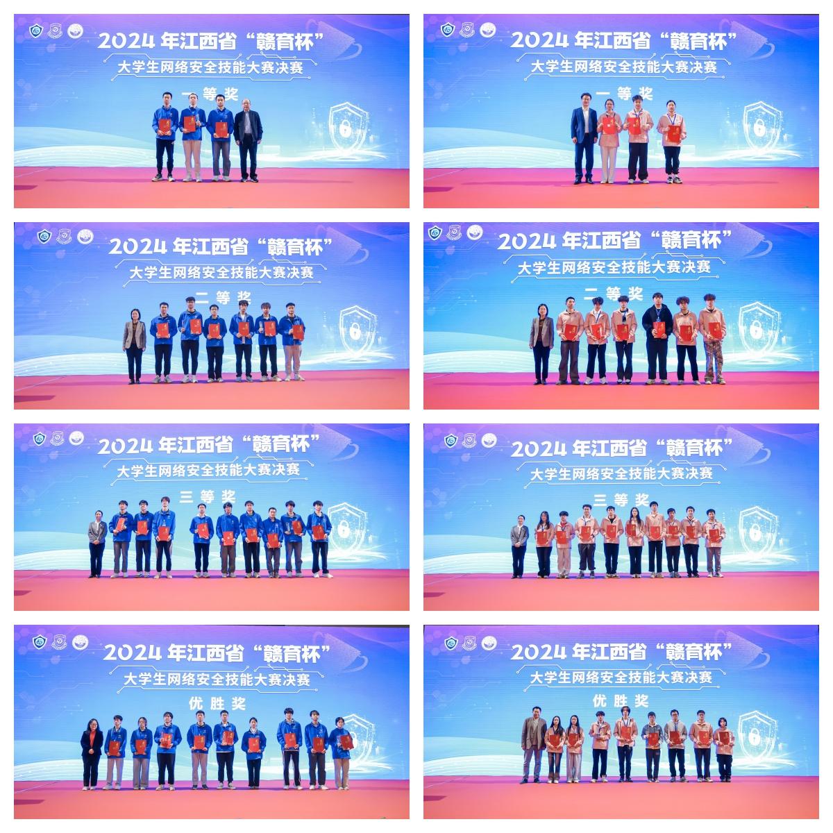 經過激烈角逐,江西警察學院、江西環境工程職業學院分別獲得本科院校組、高職高專組一等獎;南昌大學、贛南科技學院,江西職業技術大學分別獲得本科院校組、高職高專組二等獎;南昌大學、江西師范大學、東華理工大學,江西工程職業學院、贛州職業技術學院、九江理工職業學院分別獲得本科院校組、高職高專組三等獎。此外,江西師范大學、華東交通大學、南昌航空大學科技學院,江西機電職業技術學院、九江理工職業學院、江西司法警官職業學院、江西軟件職業技術大學分別獲得本科院校組、高職高專組優勝獎。