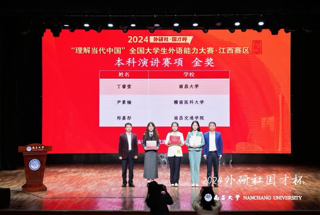 本網(wǎng)訊(外國(guó)語學(xué)院 陳念洪)11月8日至9日,2024“外研社?國(guó)才杯”“理解當(dāng)代中國(guó)”全國(guó)大學(xué)生外語能力大賽江西賽區(qū)比賽在我校舉行。本次大賽由外語教學(xué)與研究出版社主辦,南昌大學(xué)外國(guó)語學(xué)院承辦,江西省外語學(xué)會(huì)和江西省大學(xué)外語教學(xué)研究會(huì)協(xié)辦。南昌大學(xué)黨委常委、組織部部長(zhǎng)劉建光、江西省外語學(xué)會(huì)監(jiān)事會(huì)主席廖洪中、外語教學(xué)與研究出版社江西信息中心主任邵井廬以及大賽評(píng)委代表出席頒獎(jiǎng)典禮,并為各賽項(xiàng)獲獎(jiǎng)選手頒獎(jiǎng)。