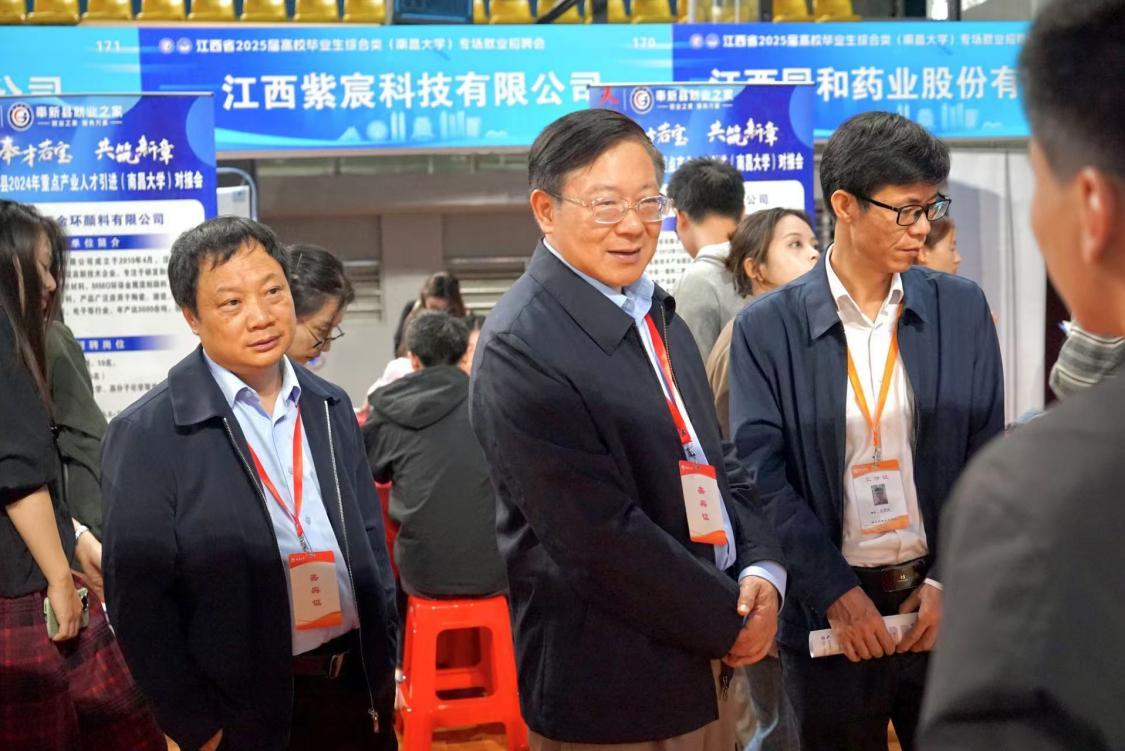 校黨委書記羅嗣海、副校長陳始發、江西省就業創業服務中心公共服務處處長鄭軒華等到現場指導巡看。羅嗣海一行深入招聘會現場,詳細了解用人單位的人才需求以及對學校就業工作意見和建議,關切畢業生求職準備情況和就業意向,勉勵現場應聘畢業生認真準備、積極行動,抓住機遇,盡早走上理想崗位。