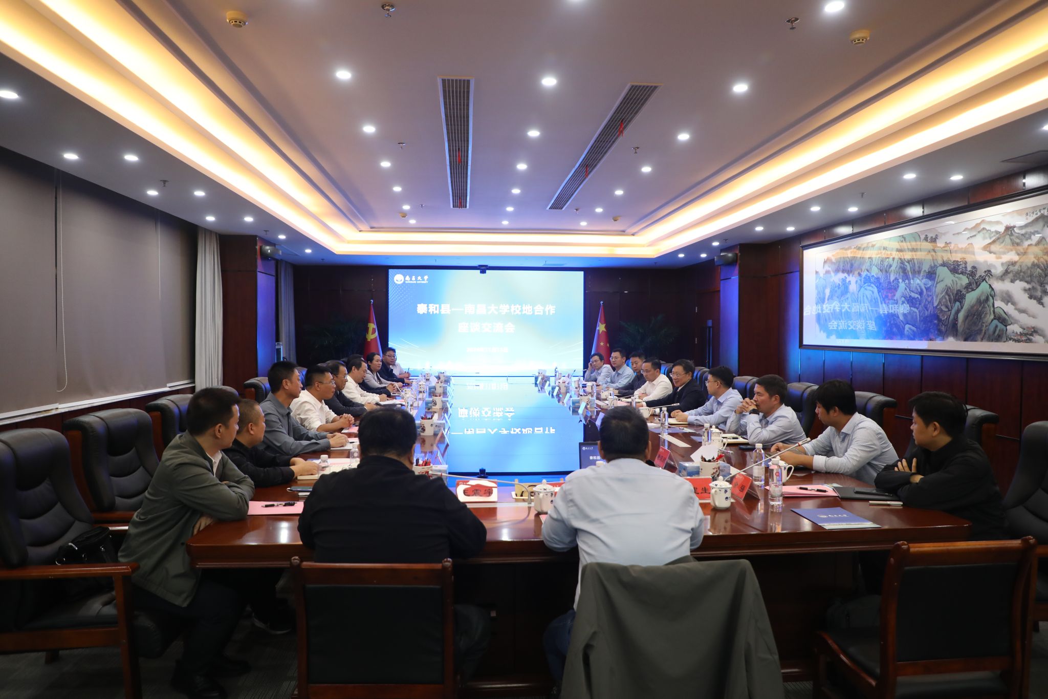座談會上,羅嗣海對孫英劍一行的到來表示熱烈歡迎。他強調,南昌大學作為一所扎根江西的“雙一流”建設高校,未來將進一步加強與泰和縣的交流合作,努力開啟校地合作新篇章。陳始發介紹了學校基本情況和近年來發展成效。劉建光介紹了學校產學研現狀和校地合作情況。孫英劍介紹了泰和縣當前發展形勢、產業布局以及面臨的機遇與挑戰。