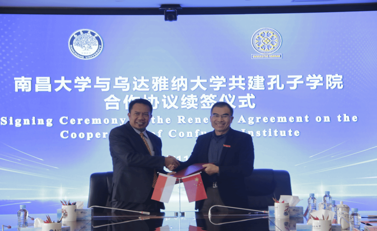 簽約儀式上,陳曄光對烏達雅納大學代表團的到來表示熱烈歡迎,并簡要介紹了南昌大學改革發展情況,回顧了兩校近年來合作情況。他表示,此次續簽共建孔子學院合作協議,是兩校合作的新起點,希望以此為契機,與烏達雅納大學一道共同把握中國“一帶一路”倡議和印度尼西亞“全球海洋支點”戰略發展機遇,進一步鞏固合作成果,拓展合作領域,提升合作水平,為促進兩國民心相通、文明互鑒、友好合作貢獻新的力量。
