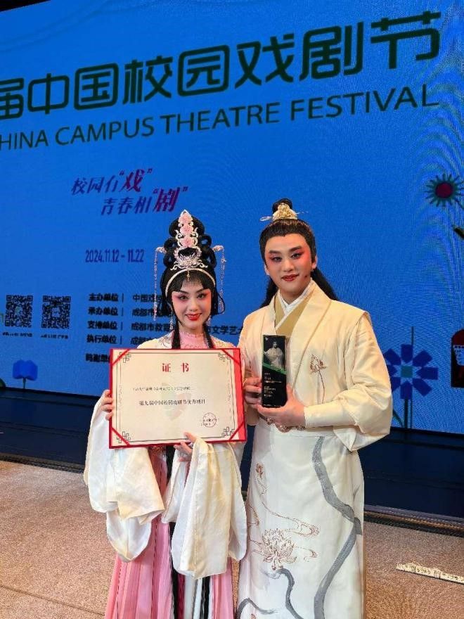 本網訊(贛劇藝術中心)近日,第九屆中國校園戲劇節展演活動在四川成都舉行,從全國210多所院校的355個劇目中評審入圍的39臺劇目參加展演。由南昌大學出品,南昌大學藝術學院、贛劇文化藝術中心打造,江西省戲劇家協會選送的贛劇《南柯悟道》精彩上演,并獲最高榮譽“優秀劇目”獎。這也是南昌大學繼2010年第二屆中國校園戲劇節之后,再度獲此殊榮。