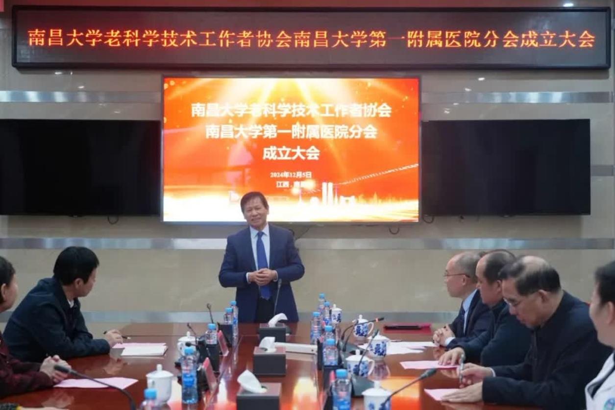 滕勇前對一附院老科協(xié)分會的成立表示熱烈祝賀,并對學(xué)校及醫(yī)院老科技工作者作出的積極貢獻表示衷心感謝。他指出,南昌大學(xué)老科協(xié)深入貫徹黨的二十屆三中全會精神,近年來在黨建、學(xué)生教育、教學(xué)督導(dǎo)、醫(yī)療咨詢和服務(wù)社會等多個領(lǐng)域取得了顯著成效,希望分會成為老科技工作者交流思想、切磋技藝、共謀發(fā)展的溫馨家園,繼續(xù)為學(xué)校和醫(yī)院的發(fā)展注入新活力。