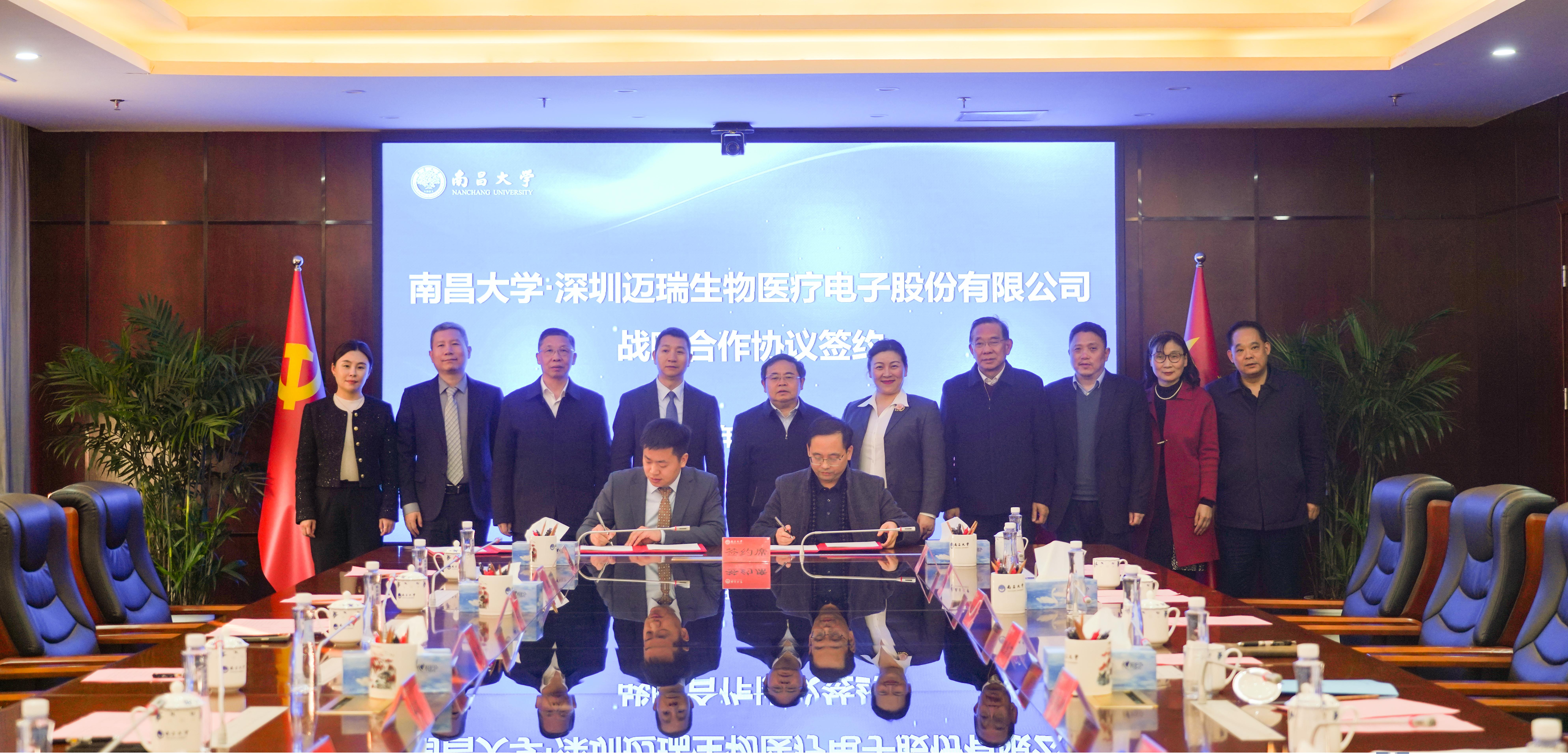 雙方簽署了《南昌大學·深圳邁瑞生物醫(yī)療電子股份有限公司戰(zhàn)略合作協(xié)議》《深圳邁瑞生物醫(yī)療電子股份有限公司—南昌大學共建南昌大學高端醫(yī)療器械與裝備創(chuàng)新研究院合作協(xié)議》《無創(chuàng)柔性可穿戴式心臟監(jiān)護及連續(xù)血壓測量裝置開發(fā)技術委托合同》《基于微波的非接觸式呼吸、心率和血壓監(jiān)測裝置開發(fā)技術委托合同》《高端醫(yī)療器械及裝備前瞻性技術服務技術委托合同》《南昌大學第一附屬醫(yī)院·深圳邁瑞生物醫(yī)療電子股份有限公司戰(zhàn)略合作協(xié)議》《“醫(yī)院設備管理系統(tǒng)應用、研發(fā)及轉化”項目合作框架協(xié)議》,并舉行了《邁瑞醫(yī)療一南昌大學高端醫(yī)療器械與裝備創(chuàng)新研究院》揭牌儀式。