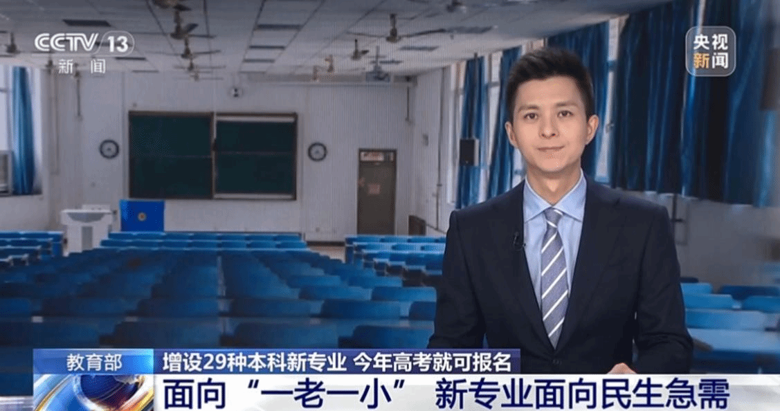 編者按:4月22日,中央電視臺新聞頻道以《教育部 增設29種本科新專業 今年高考就可報名 面向“一老一小” 新專業面向民生急需》為題,報道南昌大學等三所高校,面向民生急需,增設老年醫學與健康專業。詳情如下: