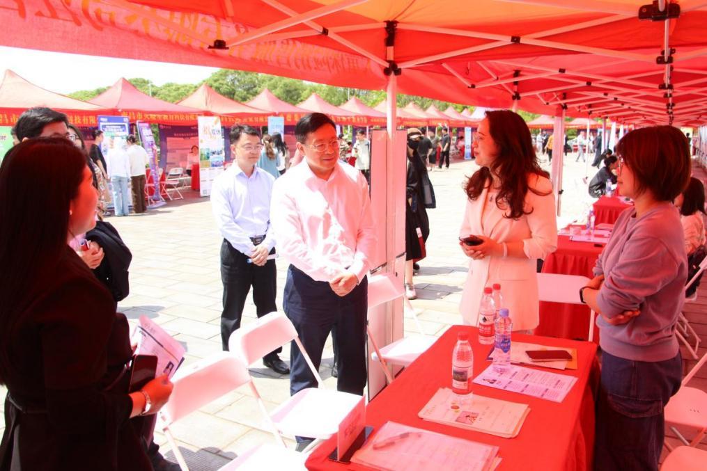 本網訊(招生與就業工作處 劉赫琪)4月25日上午,學校在前湖校區就業之家舉辦“校友攜手,‘職’引未來”南昌大學2025年校友企業專場招聘會。校黨委書記羅嗣海,副校長吳丹,黨委常委、組織部部長劉建光到場與校友企業家和畢業生親切交流。