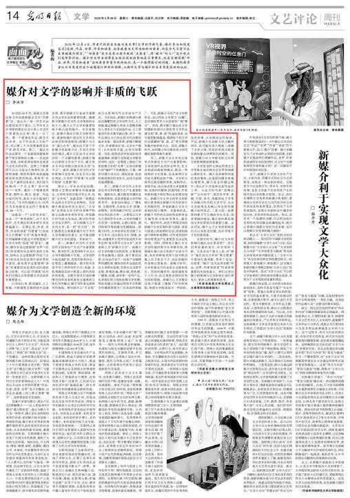 編者按:5月28日,光明日報刊登我校谷霽光人文高等研究院副院長李洪華署名文章《媒介對文學的影響并非質的飛躍》。詳情如下: