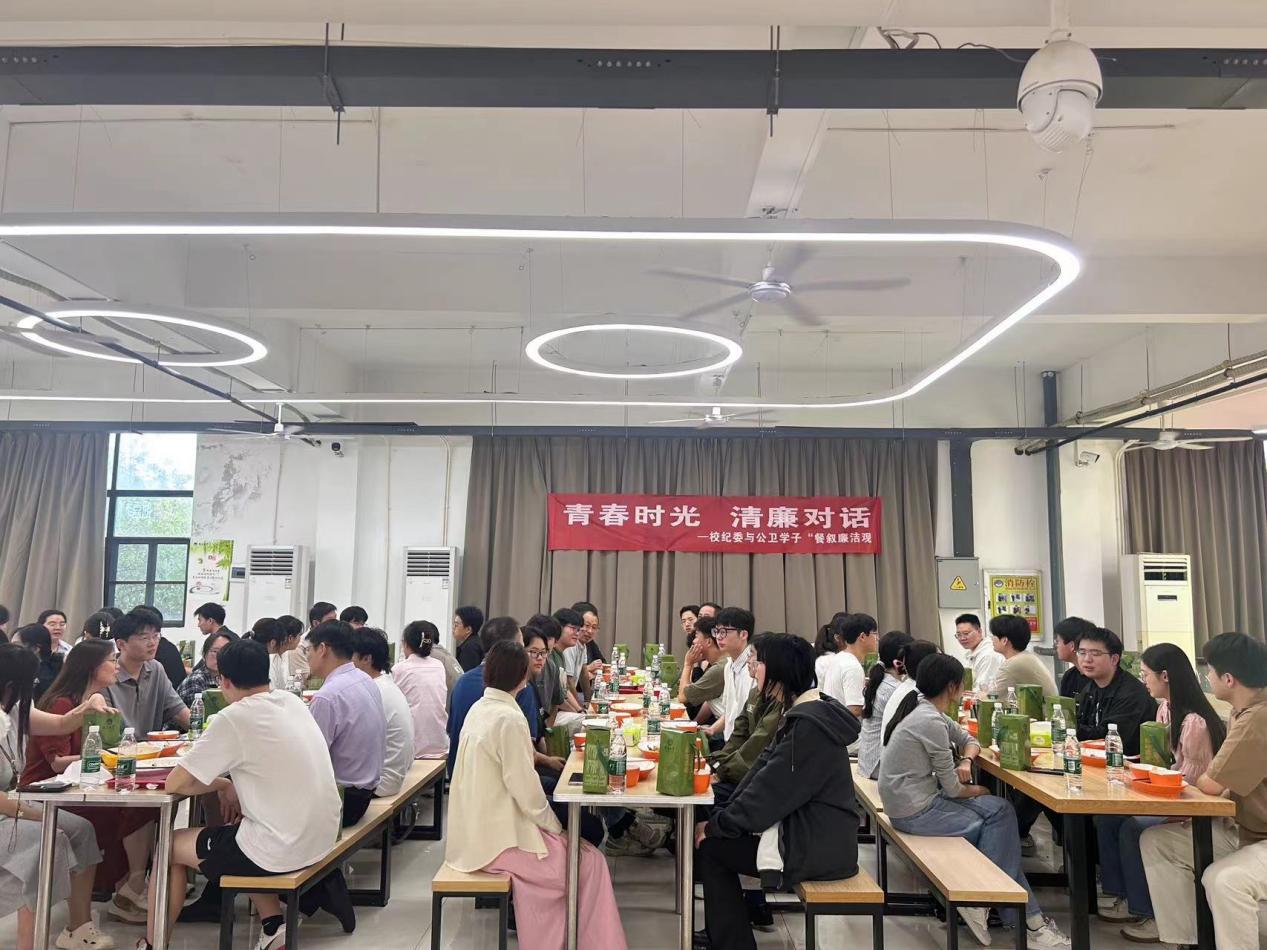 活動現場,餐桌上擺滿了熱氣騰騰的餐食,校紀委干部與學生代表們圍坐一起,以“家常飯”話“廉潔事”。“食堂的飯菜分量足嗎?學習生活中有什么困難嗎?”“你對身邊的廉潔現象有什么觀察?”……從食堂飯菜談到學生資助的公平公正,從抵制“微腐敗”談到弘揚清風正氣,在煙火氣中傳遞廉潔理念。同學們紛紛感慨:“以前總覺得廉潔是‘大道理’,今天才發現它就藏在我們的餐盤里、生活中。”