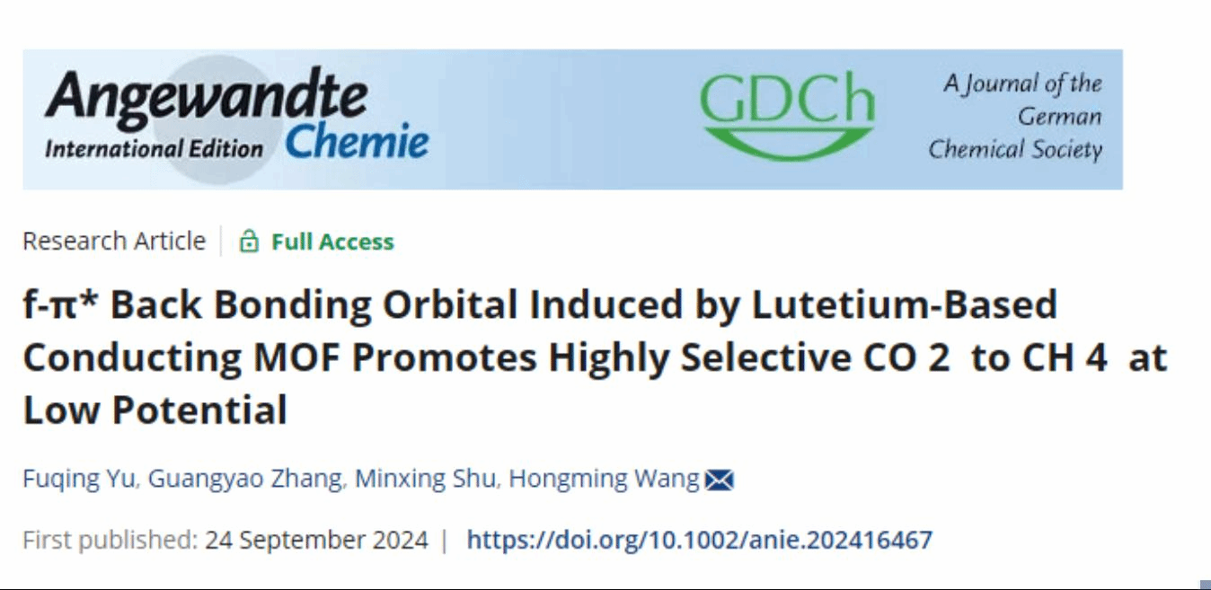 • 本網訊(化學化工學院)近日,我校化學化工學院王紅明教授課題組在稀土催化和二氧化碳資源化利用領域再次取得重要進展。研究成果以“ f-π* Back Bonding Orbital Induced by Lutetium-Based Conducting MOF Promotes Highly Selective CO2 to CH4 at Low Potential ”為題發表于化學領域頂級TOP期刊Angewandte Chemie International Edition (IF: 16.6)。南昌大學為唯一署名單位,第一作者是我校余福清博士、張光耀,博士研究生舒敏興為共同作者,王紅明教授為通訊作者。該成果是我?;瘜W學科近年來在二氧化碳資源化利用與稀土催化領域取得的又一創新性成果。