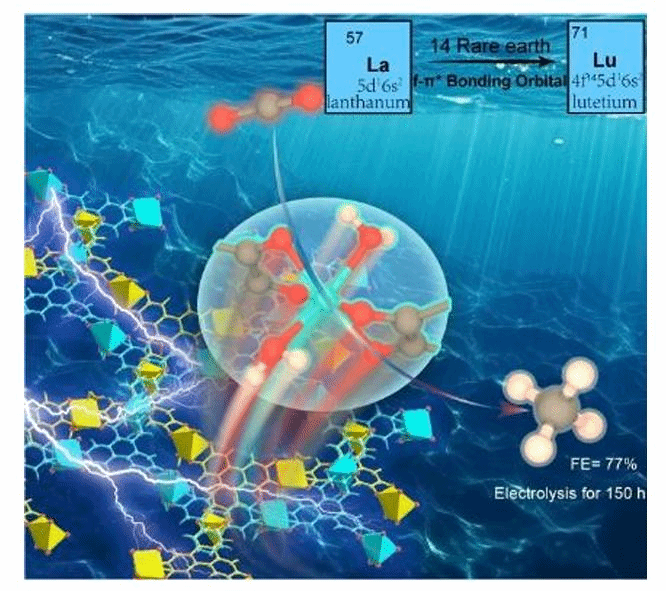 與前期同類工作相比,該成果利用非銅基的稀土-有機框架結構催化劑并能在較低的過電位下高效地將CO2電催化還原為CH4,并且具有極佳的穩定性,開辟了二氧化碳的資源化利用的全新路徑。此外,利用有機框架結構精準負載稀土位點,該策略可以達到很高的原子利用率與較低的經濟成本,為實現稀土材料的高價值利用提供了一種全新的解決方案。該研究得到國家自然科學基金委以及江西省科技廳的大力資助。