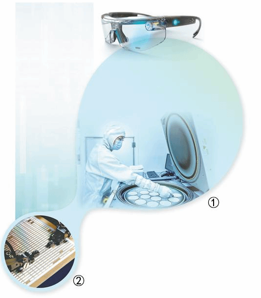 圖①:晶能光電芯片車間員工在操作設(shè)備進(jìn)行長(zhǎng)膜工藝流程。