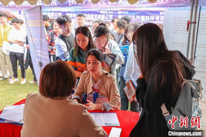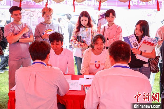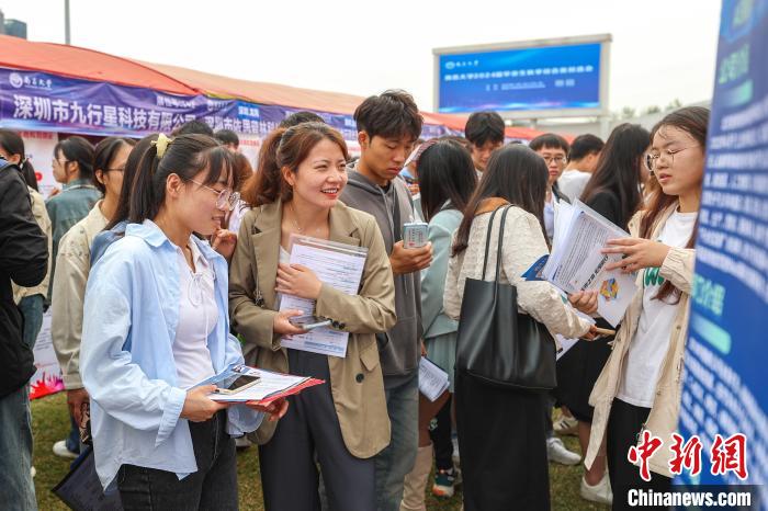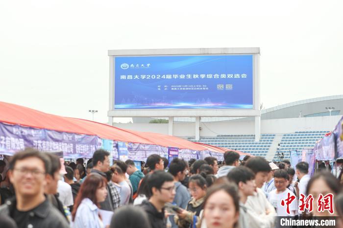 10月14日,江西南昌,南昌大學2024屆畢業(yè)生秋季綜合類雙選會在南昌大學前湖校區(qū)舉行,來自各地高等院校、事業(yè)單位、上市公司等680余家企事業(yè)單位參會,需求人數達3.9萬余人。雙選會現(xiàn)場人潮涌動,眾多南昌大學本校畢業(yè)生和外校畢業(yè)生在尋找工作機會。