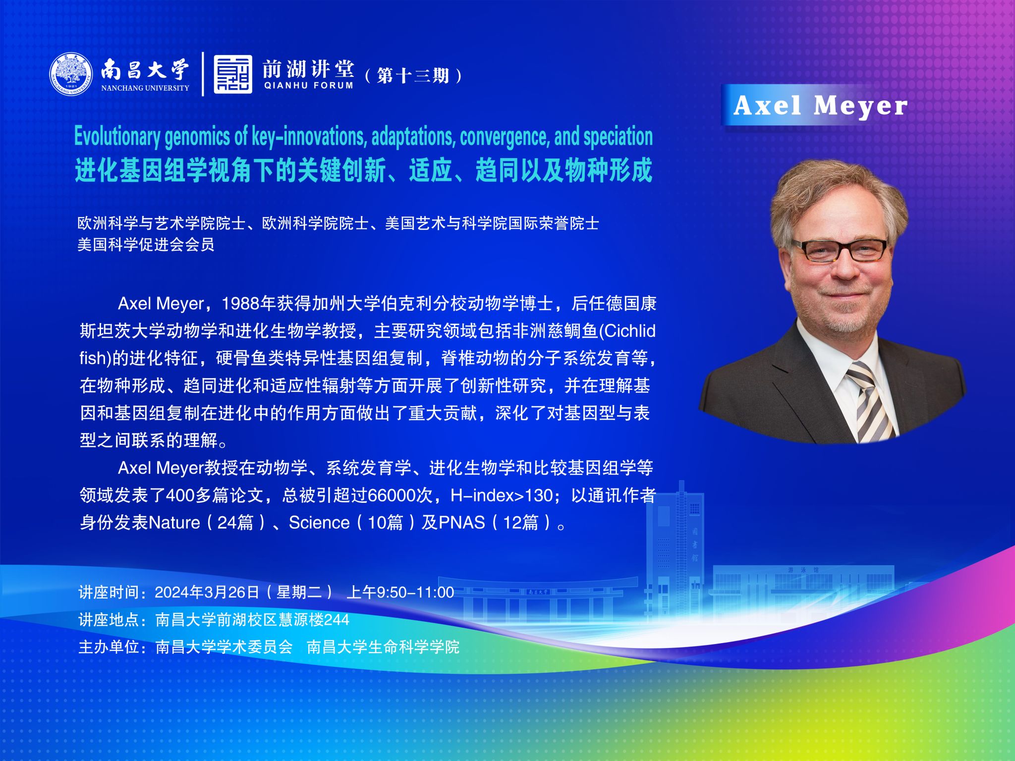 時間 2024年3月26日(星期二) 地點 南昌大學前湖校區慧源樓244
