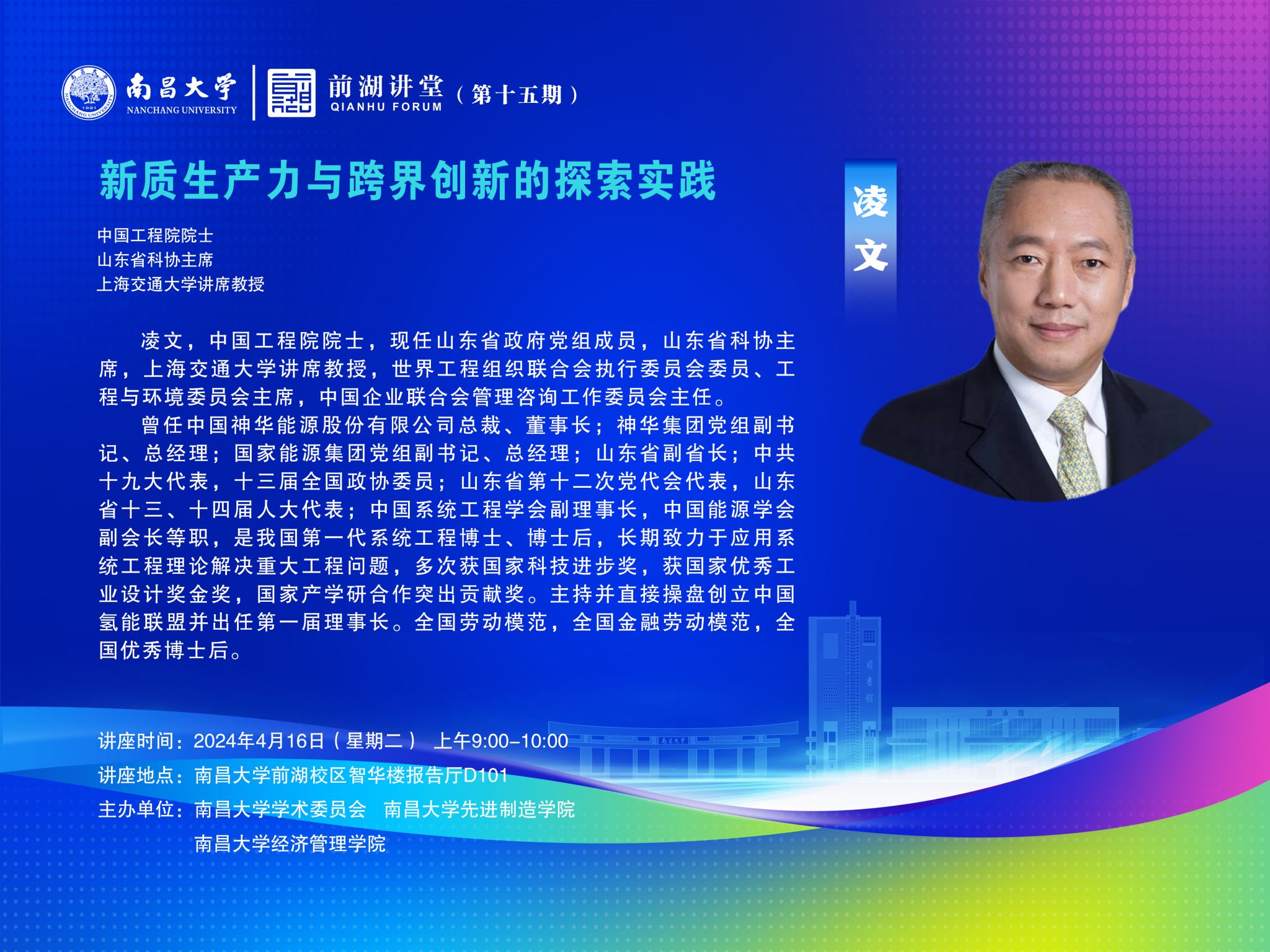 時間 2024年4月16日(星期二) 地點 南昌大學前湖校區智華樓報告廳D101