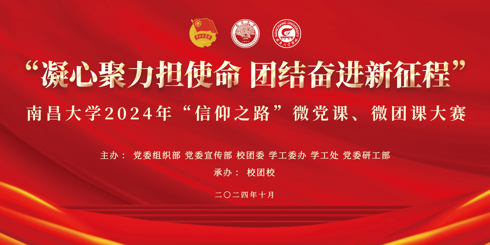 為深入學習貫徹習近平新時代中國特色社會主義思想和黨的二十屆三中全會精神,緊緊圍繞立德樹人根本任務,堅持不懈用習近平新時代中國特色社會主義思想鑄魂育人,實施新時代立德樹人工程,培養一批有理想、敢擔當、能吃苦、肯奮斗的新時代好青年,黨委組織部、黨委宣傳部、團委、學工委辦、學工處和研究生工作部特組織開展“凝心聚力擔使命 團結奮進新征程”南昌大學 2024 年“信仰之路”微黨課、微團課大賽。